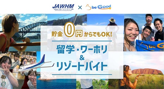 ビーグッド株式会社が一般社団法人日本ワーキング・ホリデー協会と協同で、海外留学やワーホリを支援する新サービス「貯金0円からでもOK!留学・ワーホリ&リゾートバイト」を開始!