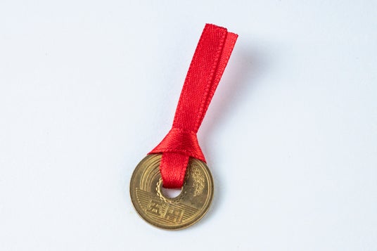 『かみ氷』を購入の方に、当店にお越しくださったご縁に感謝を込めて『ご縁玉(5円玉)』をお渡しします。赤い色には魔除けの意味があり、お客様が穏やかにお過ごしになることを願っています。願いが叶った時やここぞという時の神社参拝のお賽銭にお使いください。