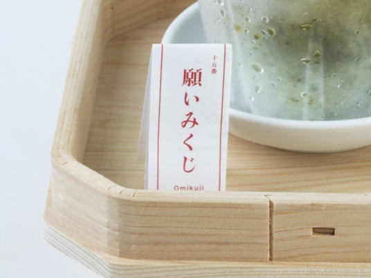 提供時にお客様自身でおみくじを引いていただく運試しです。将来に向けた前向きな言葉や心に響く励ましのメッセージが書かれています。