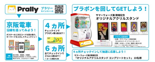 さらに、Wチャンスとしてスタンプラリーを達成後、応募フォームからご応募いただいた方の中から抽選で10名様に、「サマーウォーズ展開催記念オリジナルアクリルスタンド コンプリートセット」をプレゼントいたします。