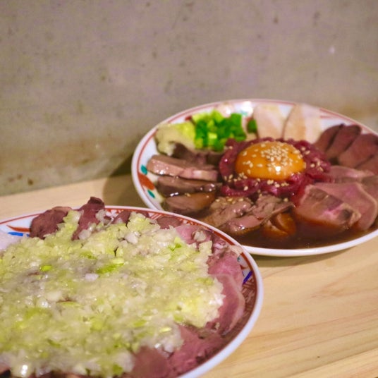 肉刺しは黒と白。黒の自家製ユッケダレと白の自家製ネギ塩ダレ。