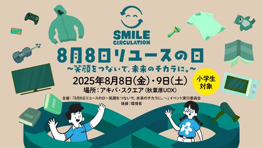 8月8日リユースの日をきっかけとしたリユースと循環型社会に関する認識の浸透、リユース人口の拡大を目的に、リユース業協会会員企業6社合同で、小学生向けのリユース体験イベント「8月8日 リユースの日 ~笑顔をつないで、未来のチカラに。~」を、2025年8月8日(金)・9日(土)の2日間、東京都千代田区 アキバ・スクエアにて開催いたします。今回が初開催となる本イベントを通じ、リユースを体験することで、今後の生活でリユースを実践し、循環型社会について考える機会を創出いたします。