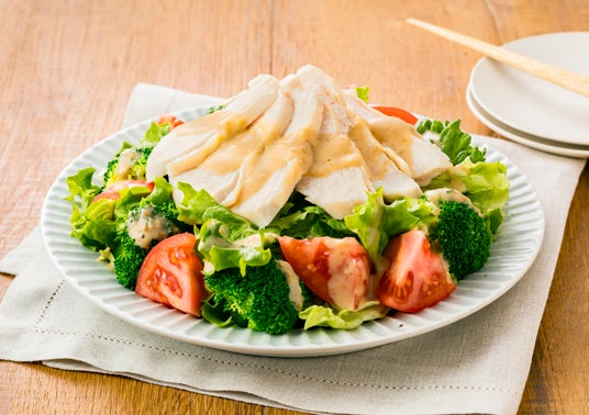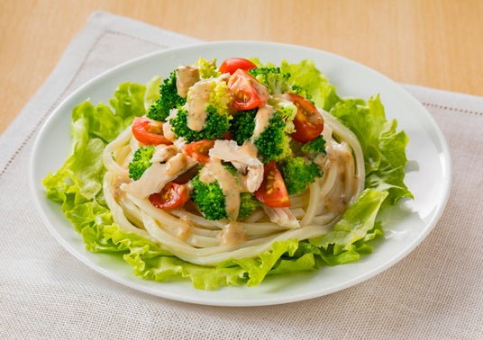 メニュー例:ブロッコリーとサラダチキンの深ごまうどん