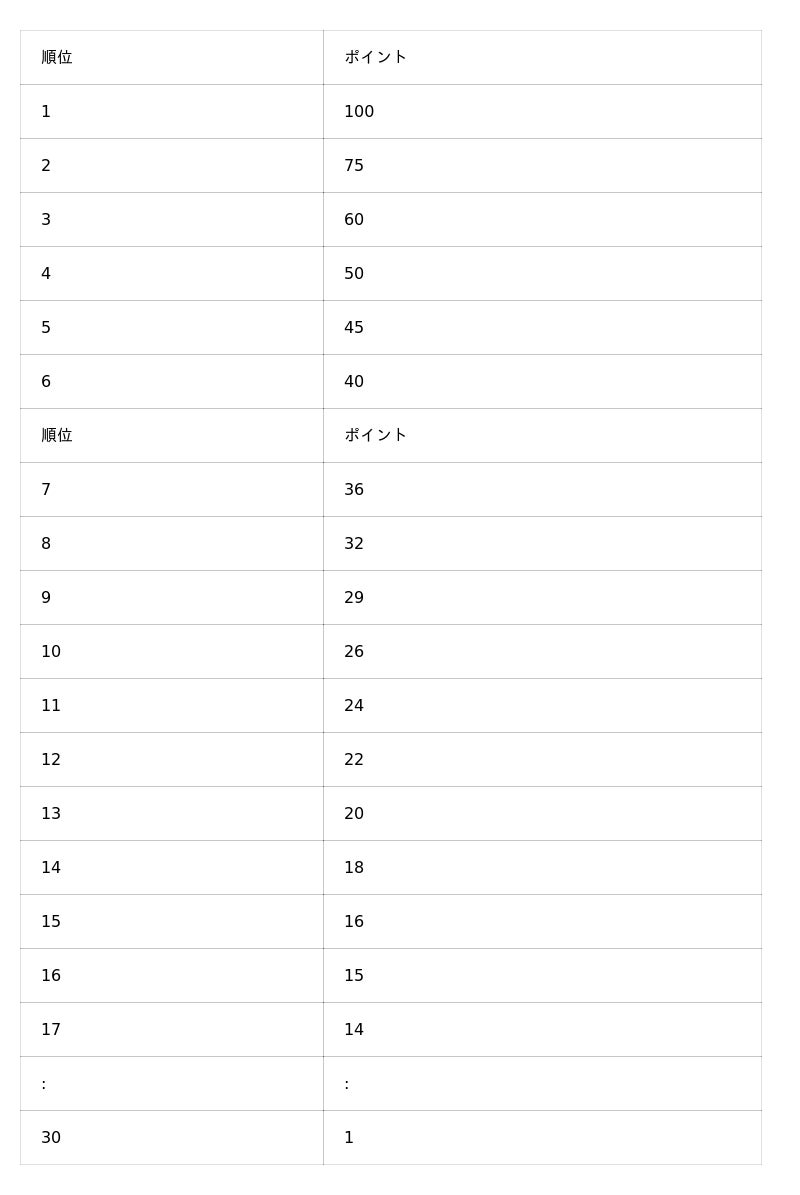 GP30 ポイントテーブル