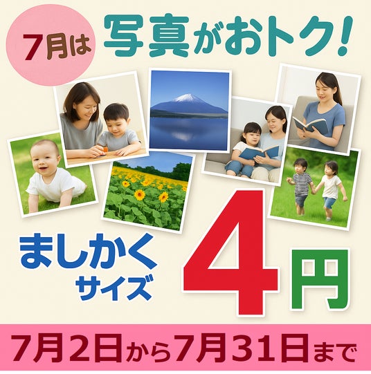 株式会社クロスワン(本社:東京都豊島区、代表取締役:品川あきら)・ABCデジカメプリント事業部は、超高詳細銀塩写真を使用した「ましかく写真=1枚4円(税込4.4円)」の大好評キャンペーンを、2025年7月2日(水)から7月31日(木)まで期間延長し、全国対応で実施いたします。