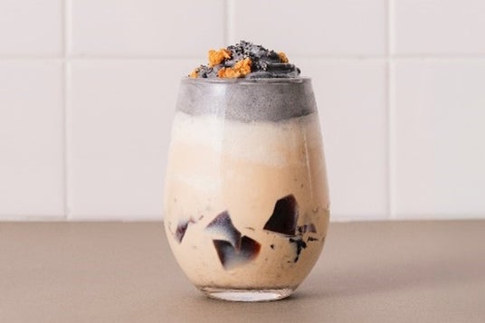 黒ごまコーヒーシェイク 750円(税込)コーヒースムージーに、黒ごまのエスプーマをトッピングしたシェイク。自家製の黒ごまコーヒーゼリーを加えたごまづくしのひんやり濃厚な一杯。