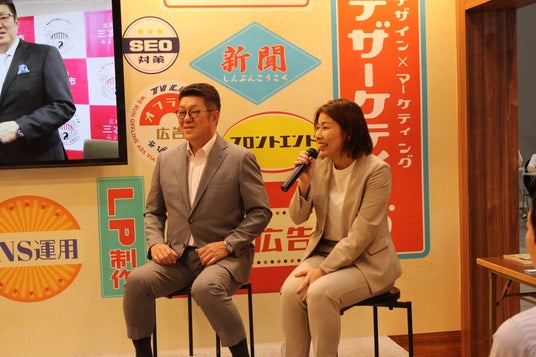 最終日に登壇したのは元サッカー日本代表で現在はセレッソ大阪会長の森島寛晃氏。トークセッションが始まる前からブースの前には森島氏が登壇することをチラシで知った来場者の方が多く立ち止まり盛り上がっていました。サッカーを始めたきっかけや2002年の日韓ワールドカップ、長居スタジアムで行われたチュニジア戦での得点についてお話していただきました。当時の得点を決めたシーンがモニターで映像に流れると客席や立ち見で見ていた人たちからも大きな拍手が沸き起こり当時の盛り上がりを再確認。また、KOTONAがセレッソ大阪に行っているPR施策についてKOTONA取締役の伊勢正基氏が語りました。
