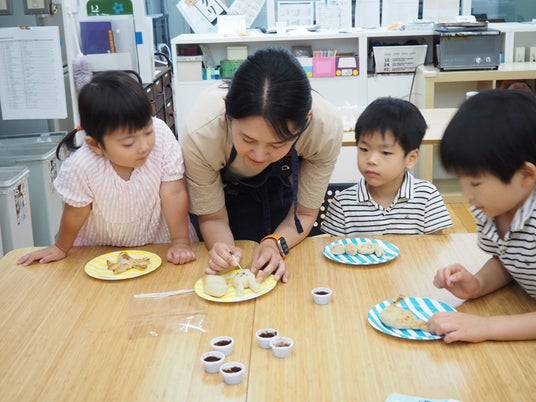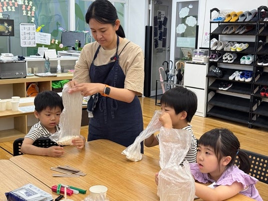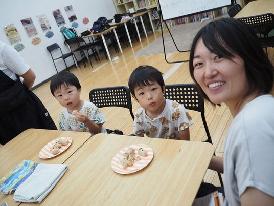 講師の指導のもと、ひとりでパンの生地づくり&焼きあがったパンへのお絵描きにチャレンジするお子さんたち