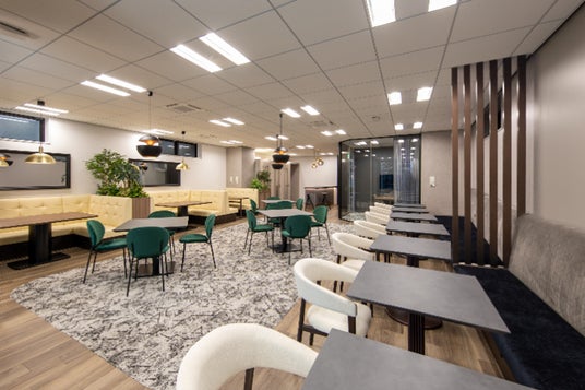 〇2階にはランチタイムや打ち合わせに利用できるラウンジを設置しています。