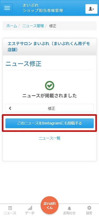 これにより、「まいぷれ」と「Instagram」という異なる媒体への情報発信を、一度の操作で同時に準備することができ、地域店舗・中小企業の担当者にとって大きな業務効率化を実現します。