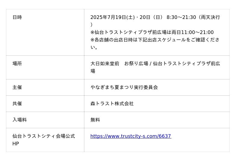 やなぎまち夏まつり 仙台トラストシティ会場概要