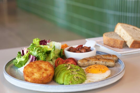 目玉焼き、アボカド、チリビーンズ、ソーセージ、ハッシュドポテト、キャロットラペ、トマト、サラダにパンまで、彩りも栄養もたっぷりのバランスプレート。それぞれの素材を引き立てるよう丁寧に仕上げており、最後まで味の変化をお楽しみいただけます。パンがセットになっているので、お好みの具材をのせて、自分だけの“オリジナルタルティーヌ”として堪能するのもおすすめ。