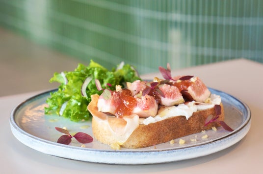 丁寧にカットしたカンパーニュに、クリームチーズ、生ハム、みずみずしいいちじくを贅沢にトッピング。仕上げに、アールグレイ茶葉を練り込んだ自家製いちじくジャムをとろりとかけ、甘さと塩気、紅茶の香りが絶妙に調和。いつもの朝が、ちょっとしたご褒美のように感じられる。そんな贅沢を一皿に込めました。
