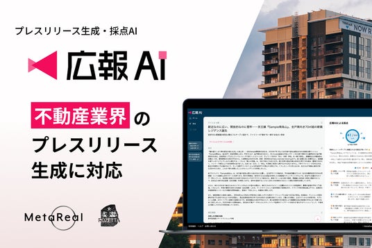 業種特化の専門AI開発・運営を行うメタリアル・グループの株式会社ロゼッタ(本社:東京都千代田区、代表取締役:五石 順一)が提供する、メディアに掲載されやすいプレスリリースを生成・採点可能な『広報AI』が、不動産業界のプレスリリース作成に対応しました。不動産市場が加熱し、情報発信のスピードが競争力に直結する今、『広報AI』が広報業務の迅速化と質の向上の両立をサポートします。
