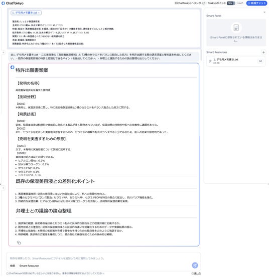 Tokkyo AIエージェント 化粧品・日用品 画面