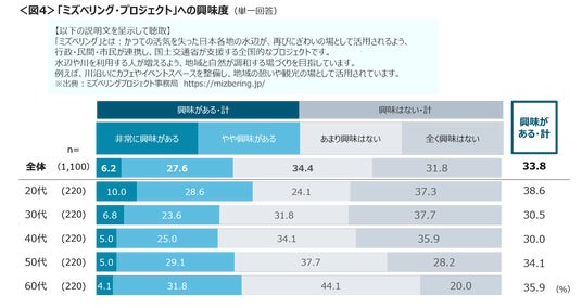 国交省などが推進する「ミズベリング・プロジェクト」に興味がある人は33.8%。