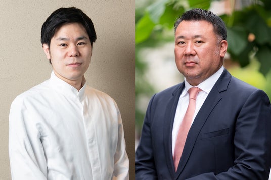 Restaurant TOYO Tokyo 丸山シェフ(左)、TOYO JAPAN株式会社 代表 阿部洋介(右)