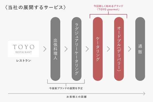 大切な方へのおもてなしをはじめ、小さなお子様がいて外出が難しいご家庭や、ご高齢のご家族がいらっしゃる方にも、“レストランに行く”のではなく、“レストランが来る”という新しい選択肢をつくりたいと考え、このたび、私たちは「TOYO gourmet(トヨグルメ)」をリリースいたしました。