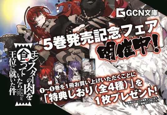 ついに重版出来!GCN文庫『モンスターの肉を食っていたら王位に就いた件』最新刊発売を記念した書店フェアも展開!