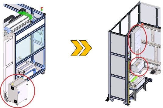 ◆制御ボックス一体型へ変更従来の別置き制御BOXから、機械内部一体型に変更。