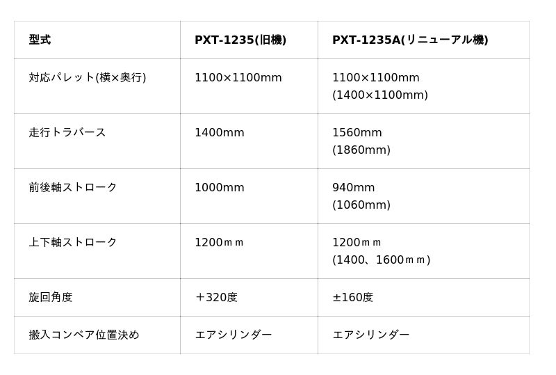 PXT-1235(旧機種)/PXT-1235A(リニューアル機種) 主仕様比較