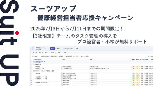 チームのタスク管理・プロジェクト管理ツール「スーツアップ」、健康経営担当者応援キャンペーン