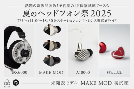 今週末は「夏のヘッドフォン祭mini 2025」へ! final新イヤホン「MAKE MOD」初お披露目 「A10000」やDITA「Prelude」など新製品試聴も
