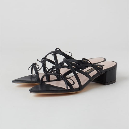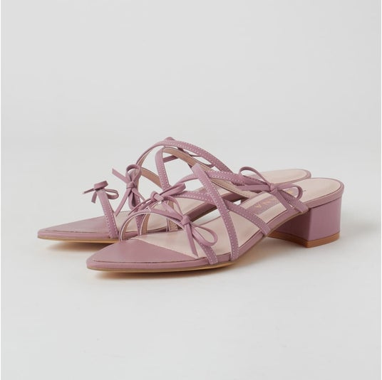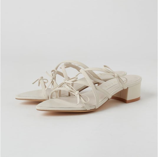 フェミニンなプチリボンを咲かせたストリングミュールサンダルにWEB限定カラーが登場。今シーズン注目のバレエコア要素を足元にも取り入れられるアイテムです。限定カラーでは、コーディネートのアクセントになるライトオーキッドとミルキーブルーの2色をご用意いたしました。