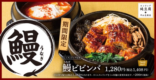 2025年は、土用の丑の日が2回巡ります。そこで、鰻と自家製豆腐とオリジナルスープのスンドゥブを一度に味わう機会として「鰻ビビンバ ミニスンドゥブ付」を2025年7月15日(火)から7月31日(木)まで期間限定で販売いたします。ふっくらとやわらかく蒸し焼きにした鰻の蒲焼きを、コチュジャン2種類とニンニクを合わせた甘辛いソースでオリジナルのビビンバに仕立てました。