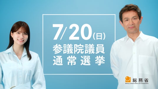 総務省は、2025年7月20日(日)に投開票を行う「第27回参議院議員通常選挙」に向け、有権者へ投票呼びかけと期日前投票の認知向上、参加促進を目的に、俳優の江口洋介さんとモデル・俳優の生見愛瑠さんを選挙啓発イメージキャラクターとして起用した新CM「さあ、投票へ。私たちの一票は明日への一歩だから。」期日前投票篇と投票日篇を、2025年7月3日(木)より放送開始いたします。
