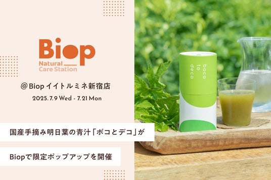 健康食品・化粧品の通販ブランド「ていねい通販」(本社:大阪市西区靭本町、代表取締役:古賀 淳一)が製造・販売する、たった2つの素材でつくる正直な青汁「ボコとデコ」は、2025年7月9日(水)~7月21日(月)の期間、オーガニック&ナチュラルコンビニエンスストア「Biop(ビオップ)」にて限定ポップアップを開催いたします。期間中は試飲も提供する予定です。