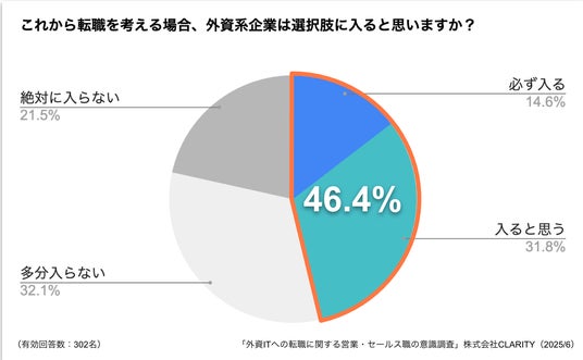46.4% の営業職が「転職を考える際、外資系企業が選択肢に入る」と回答