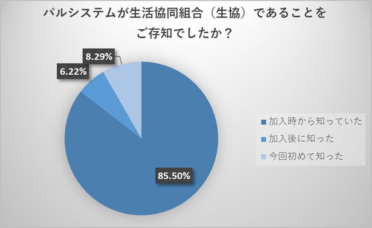 「国際協同組合年」を知っていたのは、聞いたことがある程度の人を含め15.9%でした。「協同組合」のイメージを問うと、利用者自身が運営に参加する民主的組織との回答が7割を超えた一方で、1割以上からわからないとの回答がありました。パルシステムが「生活協同組合」であることを認識して加入した人は85.5%でした。