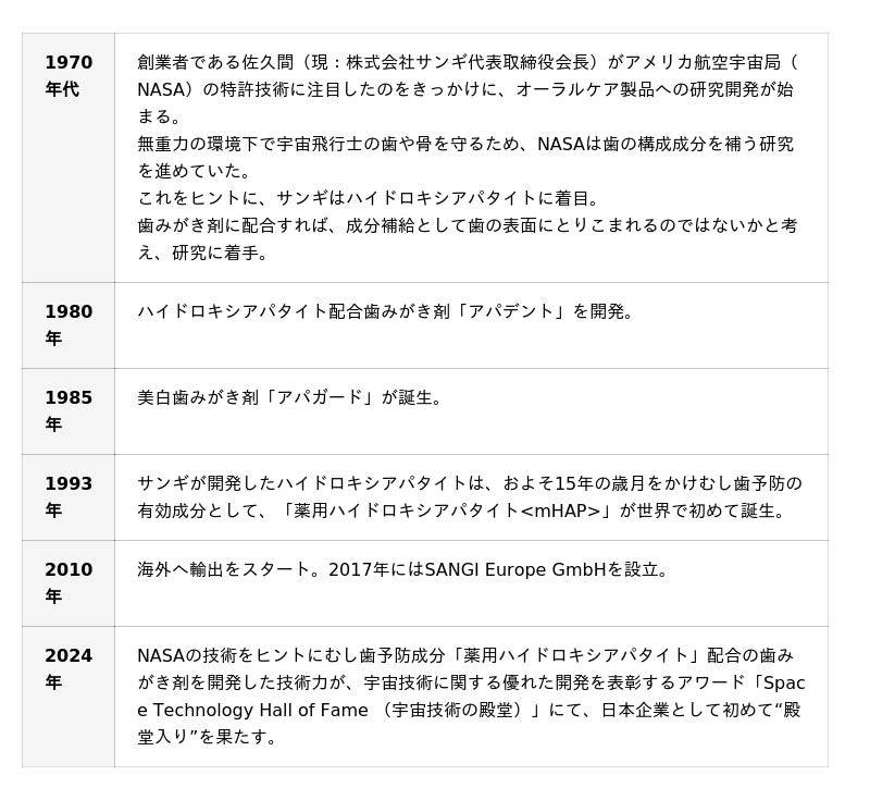 サンギ開発のむし歯予防成分「薬用ハイドロキシアパタイト」配合