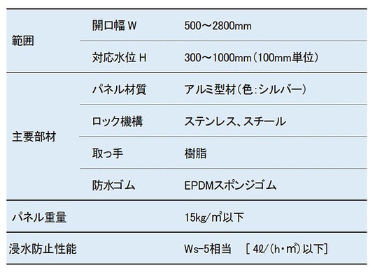 参考価格サイズ 開口幅W2,000mm 対応水位H500mm