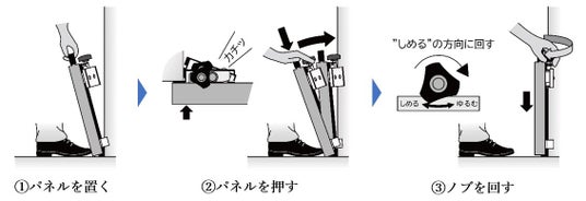 パネルを置く、パネルを押す、ノブを回すの簡単操作でセットが完了