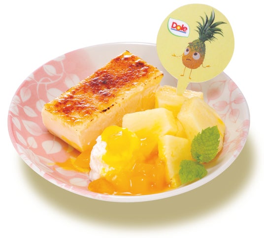 濃厚なカタラーナに爽やかなマンゴーソースとパイナップルを添えたバランスの良いデザートです。