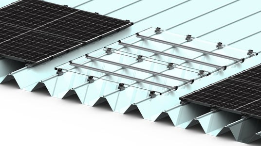 「PVサポート」は、積雪地域向けに開発された太陽光パネル補強工法です。モジュールの裏面に専用のバーを取り付けることで、積雪荷重によるパネルの変形を抑制し、破損を軽減します。豪雪地域でも安心して太陽光パネルを設置でき、屋根材の種類はハゼ式折板屋根に適用します。