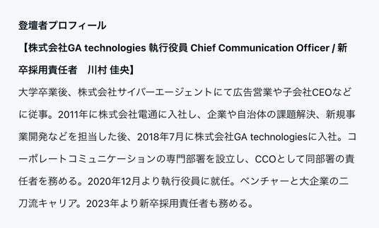 本イベントを皮切りに、株式会社GA technologiesおよびSTUDIO ZEROでは、新卒採用活動において引き続き経営陣が直接コミットをしていく予定です。事業家としての実践知や各企業の独自の文化が、学生の方々のキャリア観にどのような影響を与えるのか、今後も注視しながら、より実りある情報発信の場や採用活動を行っていきます。
