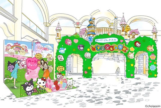 3Fエントランスホールに、 「チェゴシム」による描き下ろしビジュアルを使用したフォトスポットが登場。みんなに「小さな幸せ」を伝えるため、少しでも笑顔になることを願いながら一生懸命何かを作っているゴシムちゃんたちとサンリオキャラクターたちと一緒に、写真撮影を楽しむことができます。