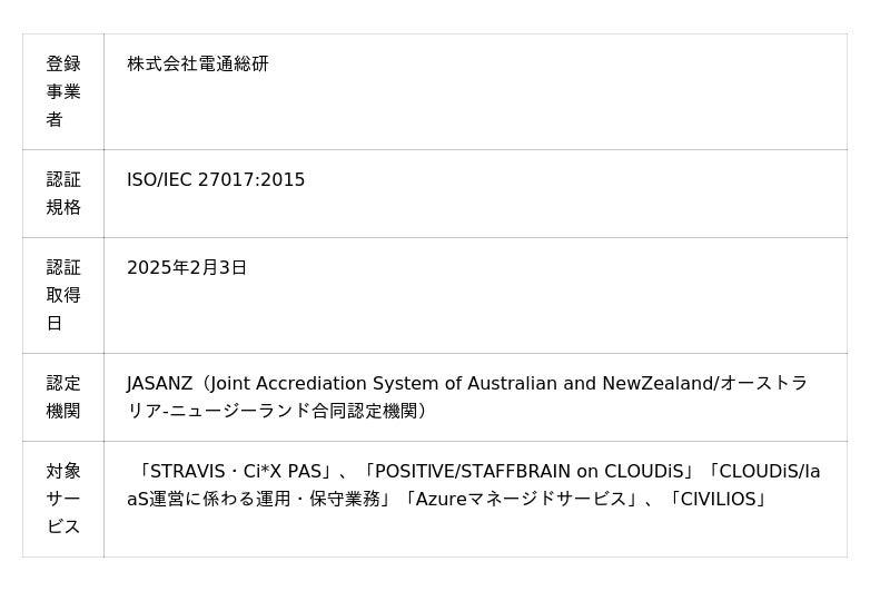 電通総研の都市OSソリューション「CIVILIOS(シビリオス)」がクラウドサービスの情報セキュリティに関する国際規格「ISO/IEC 27017:2015」を取得