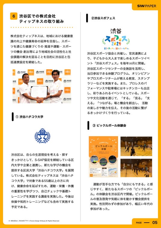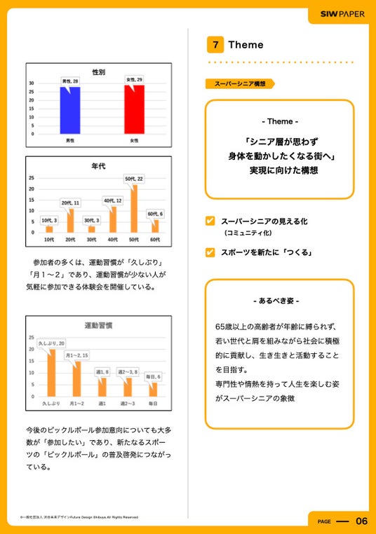 本ペーパーでは、「シニア層が思わず身体を動かしたくなる街」をテーマに、スポーツや文化を通じた新たなライフスタイルの提案を行っています。