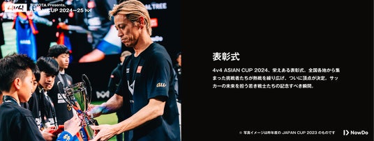Now Do株式会社(所在地:東京都新宿区、代表取締役:本田圭佑)が運営する、育成年代向けに開発された4人制サッカー大会「4v4」の史上初となる国際大会「TOYOTA Presents, 4v4 ASIAN CUP 2024-25」を2025年8月10日(日)に大田区総合体育館(東京都大田区)で開催することをご報告いたします。