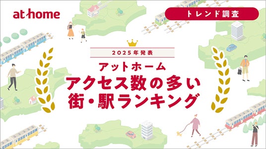 不動産情報サービスのアットホーム株式会社(本社:東京都大田区 代表取締役社長:鶴森 康史 以下、アットホーム)は、「不動産情報サイト アットホーム」でアクセス数の多い街・駅をまとめた「2025年発表!アットホーム アクセス数の多い街・駅ランキング」の第1弾を公開いたしました。それに伴い、ランキング結果の一部をお知らせいたします。また、今後はエリアごとに順次ランキングを公開いたしますので、ぜひご注目ください。