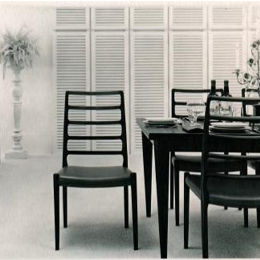その後、1968年にダイニングチェア「Model 65」が当時のデンマーク女王により王室のヨット用として選ばれ、さらに1970年には、ダイニングチェア「Model 82」が世界中のデンマーク大使館で採用され、「大使館の椅子」という愛称で呼ばれるようになりました。