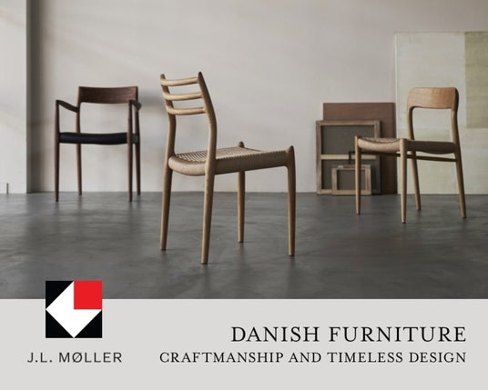 J.L. MØLLERは、1944年にデンマーク第二の都市・オーフスで創業した家具メーカーです。創業者のニールス・O・モラー(1920年-1982年)は、家具職人として修業後、デザインスクールで家具デザインを学び、創業後40年にわたり、全ての家具を自らデザイン・製造しました。