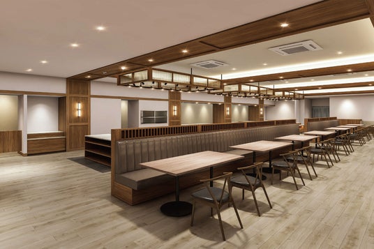 レストランはフロア面積を広げ、ライブキッチンを新設。出来たて熱々の料理はもちろん、ご当地グルメや季節のメニューなど、旅先ならではの豪華さ楽しさでお客様をおもてなしいたします。旅の目的のひとつでもある「食事」を思い出に残るものにできるよう、レストランのフロアは明るく落ち着いたなかにも、にぎわいのあるデザインに。旅行の気分を盛り上げてくれる造りとなっています。また各テーブルの間隔にゆとりを持たせることで、今まで以上にゆったりと食事をお楽しみいただけます。