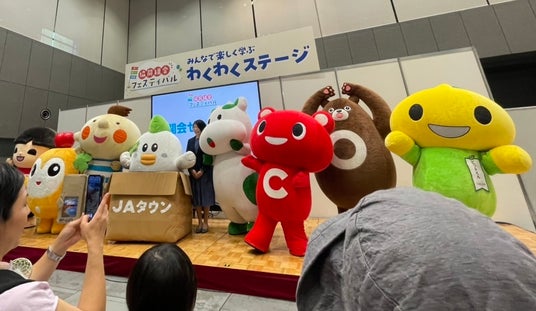 会場内のステージでは、全国各地で活躍する協同組合のキャラクターが集合するほか、お笑いジャーナリストのたかまつななさんやクイズプレーヤーでQuizKnock(クイズノック)の東言さんらによるプログラムなどが開催されました。
