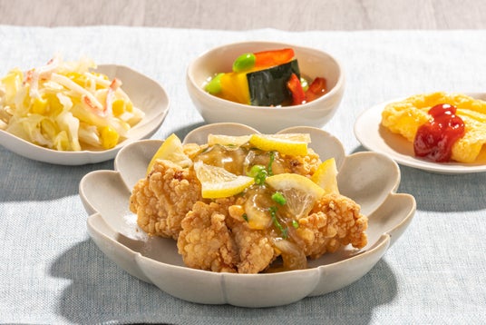 レモン香る 鶏の唐揚げ塩だれソース柔らかくジューシーに仕上げた鶏の唐揚げに、