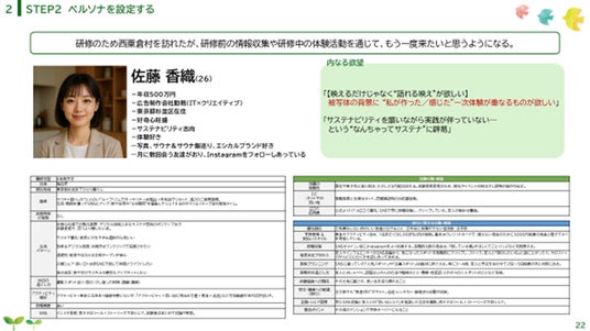 収集した一次情報を元に、生成AIを用いて作成したペルソナとカスタマージャーニーマップの例。従来では1ヵ月以上かかる作業が、実質2~3日程度で作成できた。